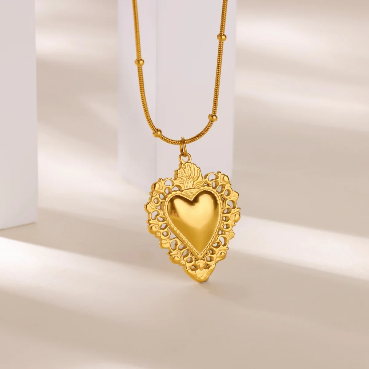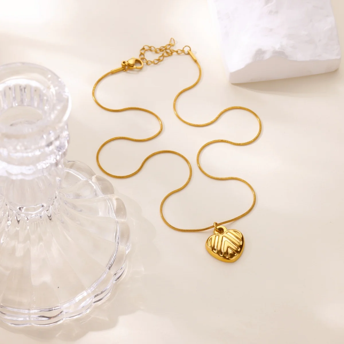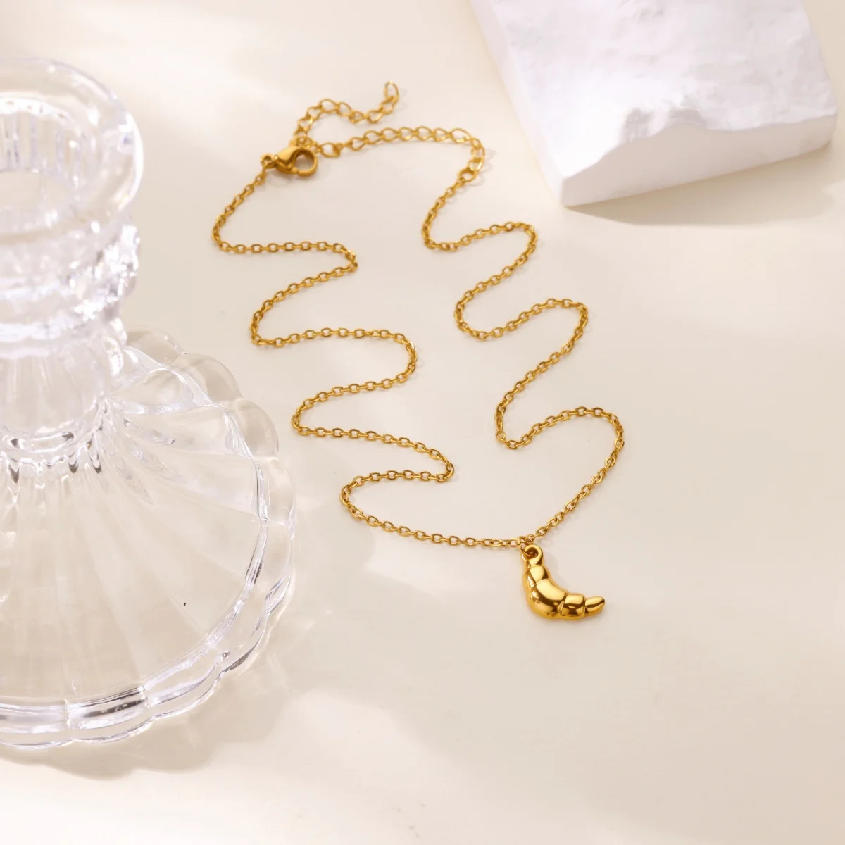 18K Gold Plated Heart Necklaces for Women Cute Croissant Pendant Stainless Steel Necklace Fashion Waterproof Jewelry