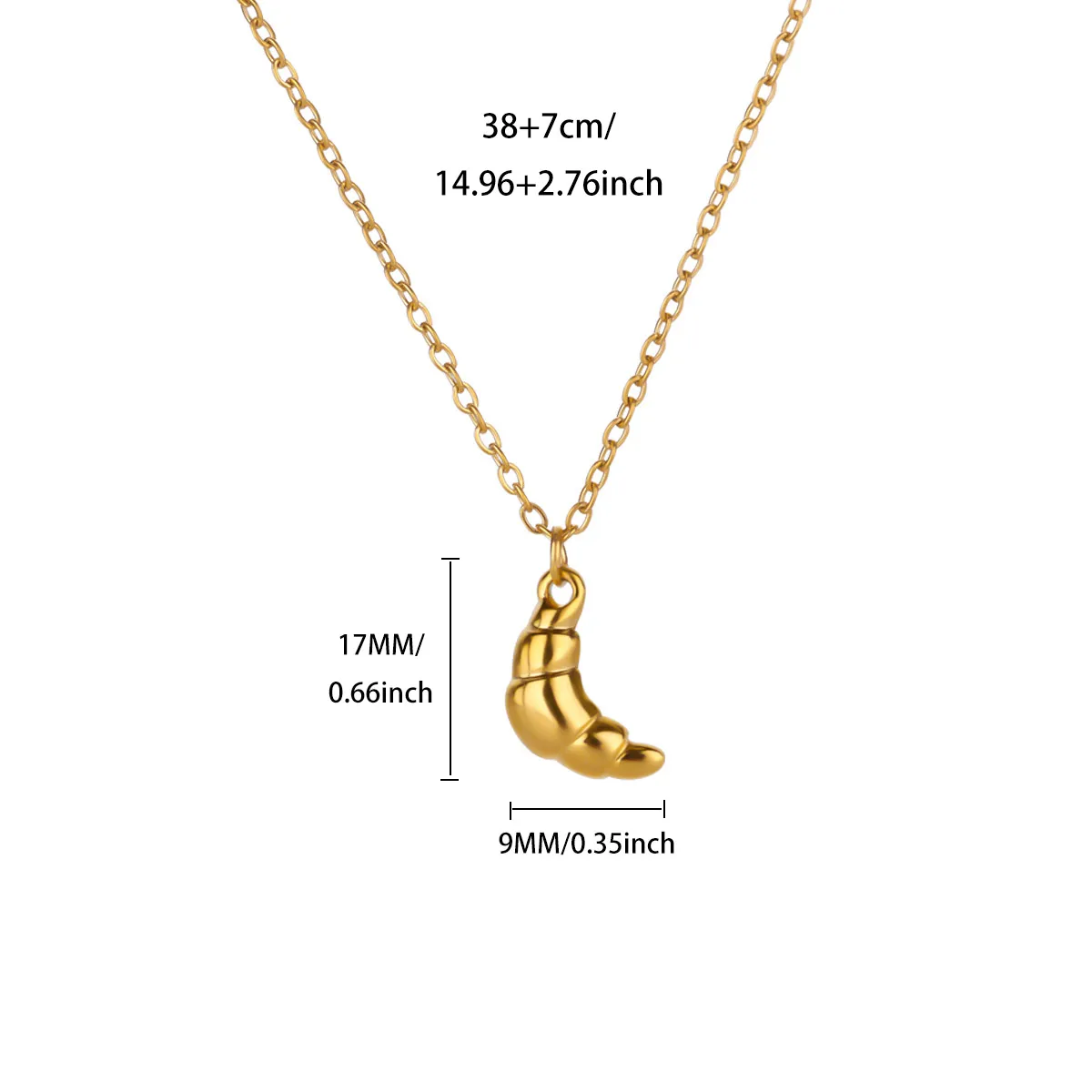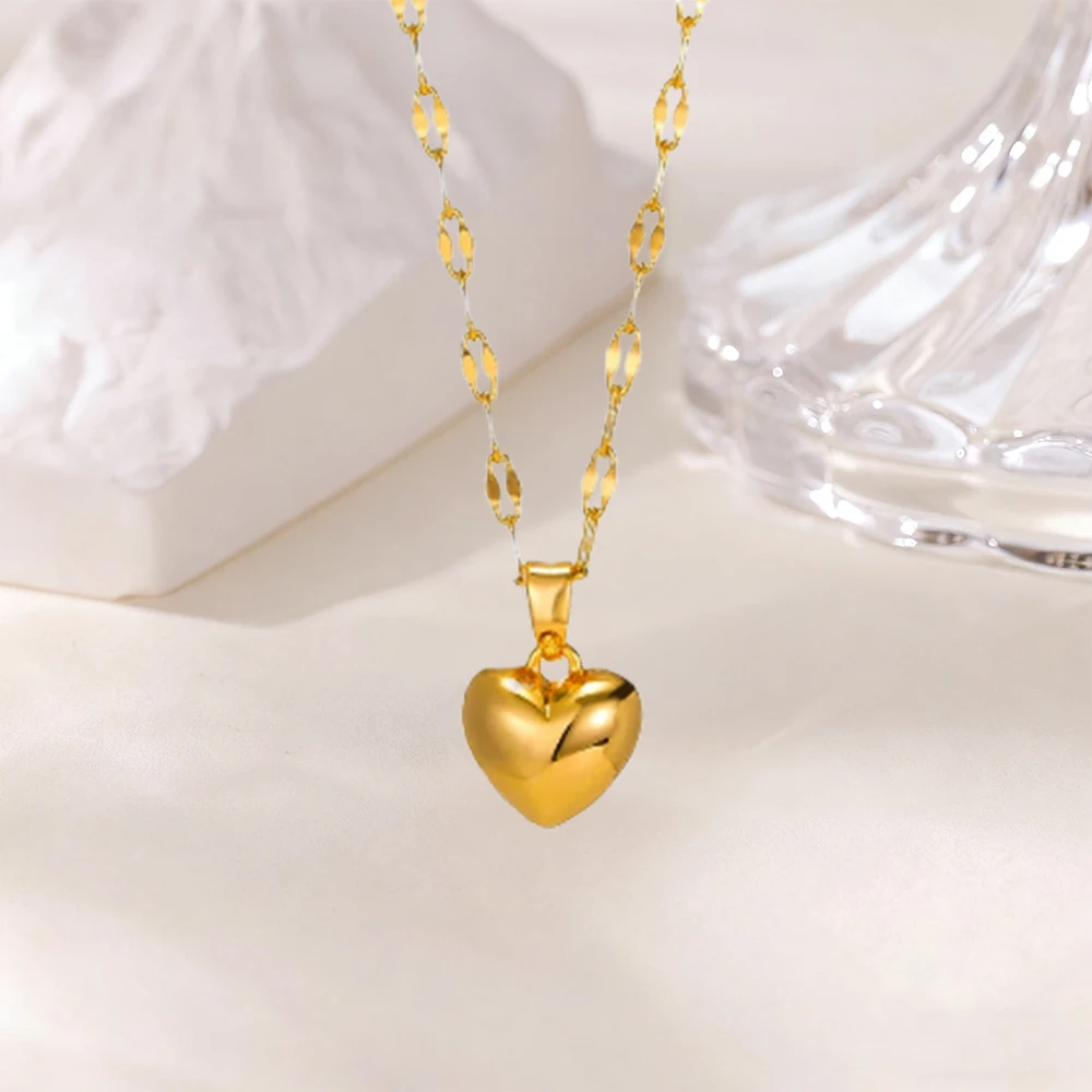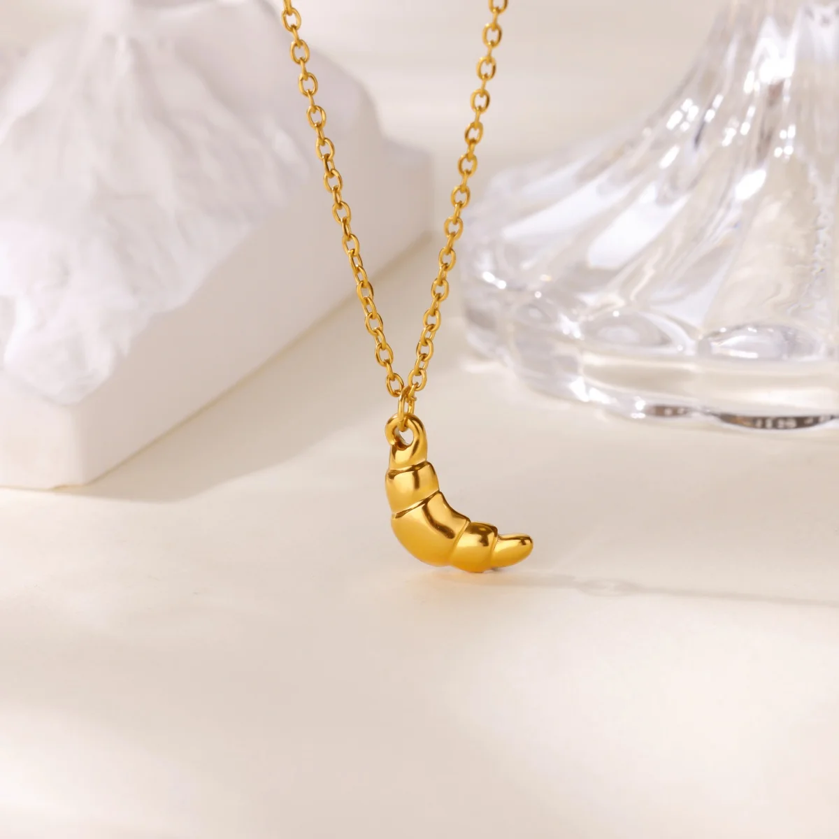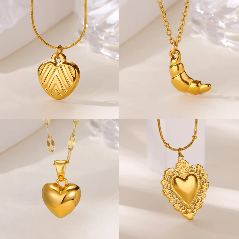 18K Gold Plated Heart Necklaces for Women Cute Croissant Pendant Stainless Steel Necklace Fashion Waterproof Jewelry