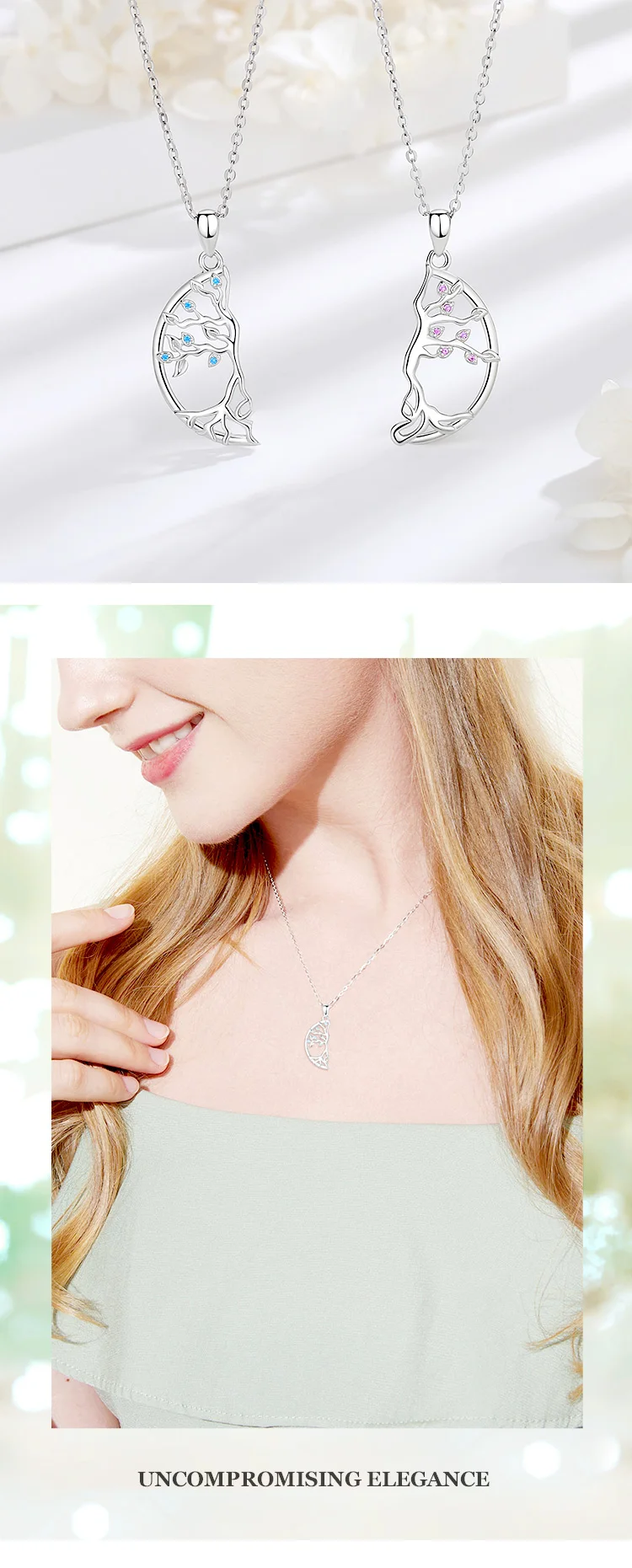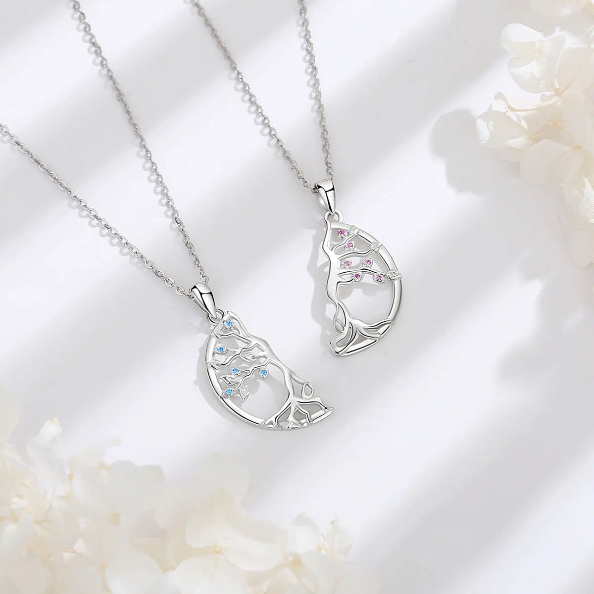 Eudora 925 Sterling Silver 2pcs/set Tree of Life Best Friends Necklace for Children BFF Friendship Jewelry Gifts for Sisters Gif
