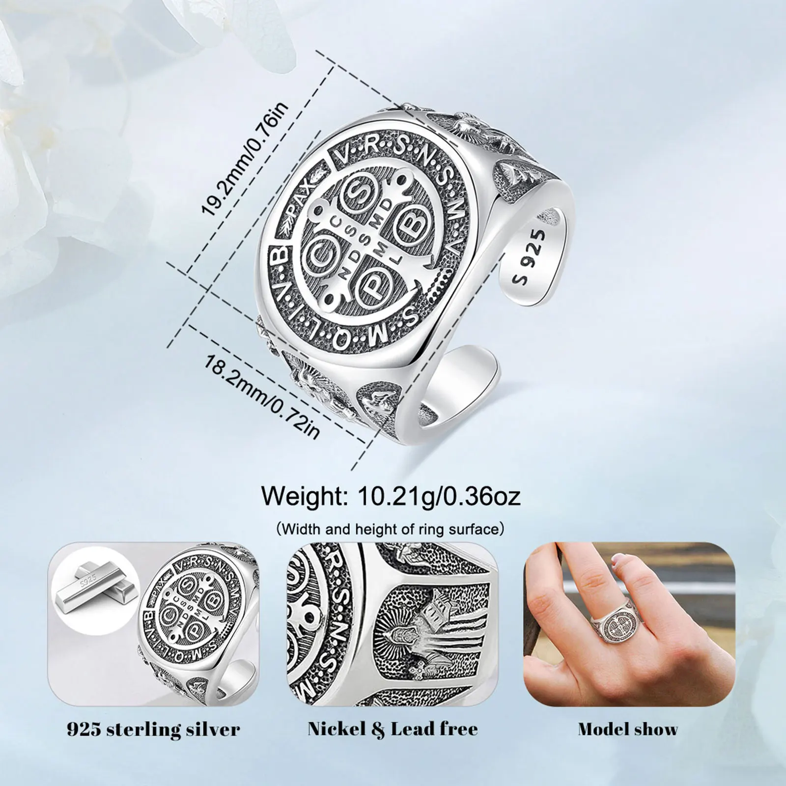 Style 2 Ring Size: 19.2*18.2mm(adjustable),Weight:10.21g