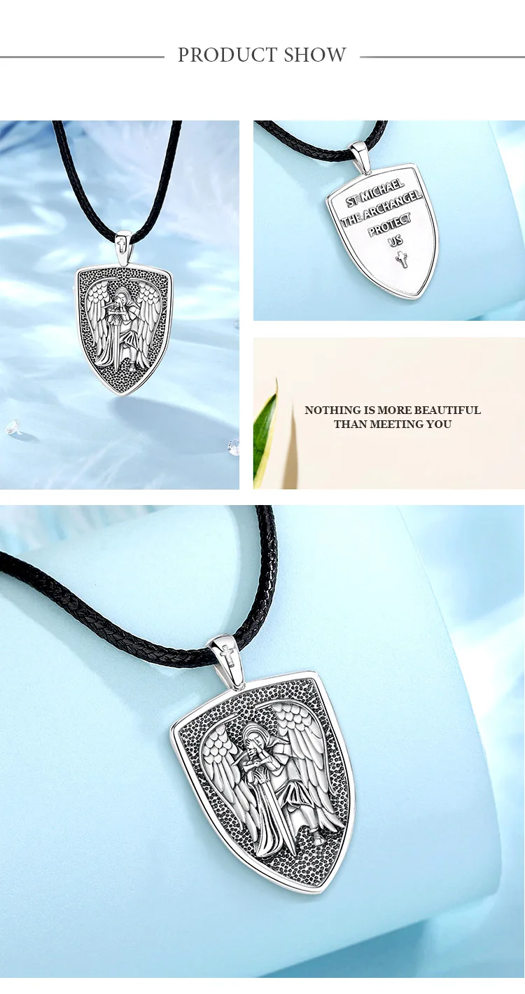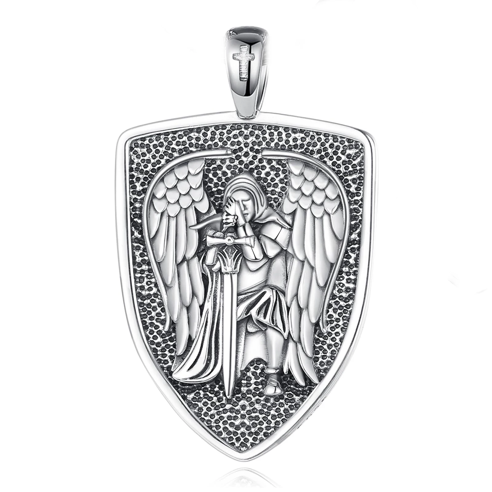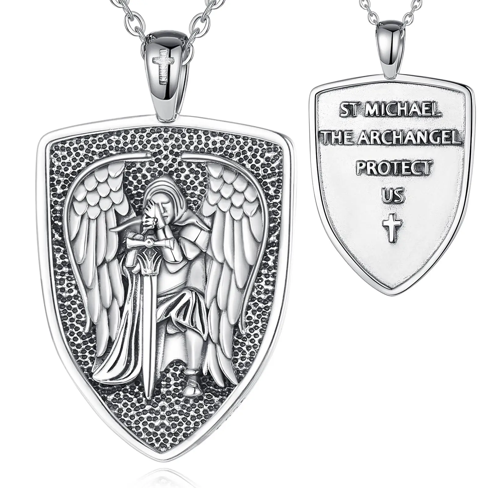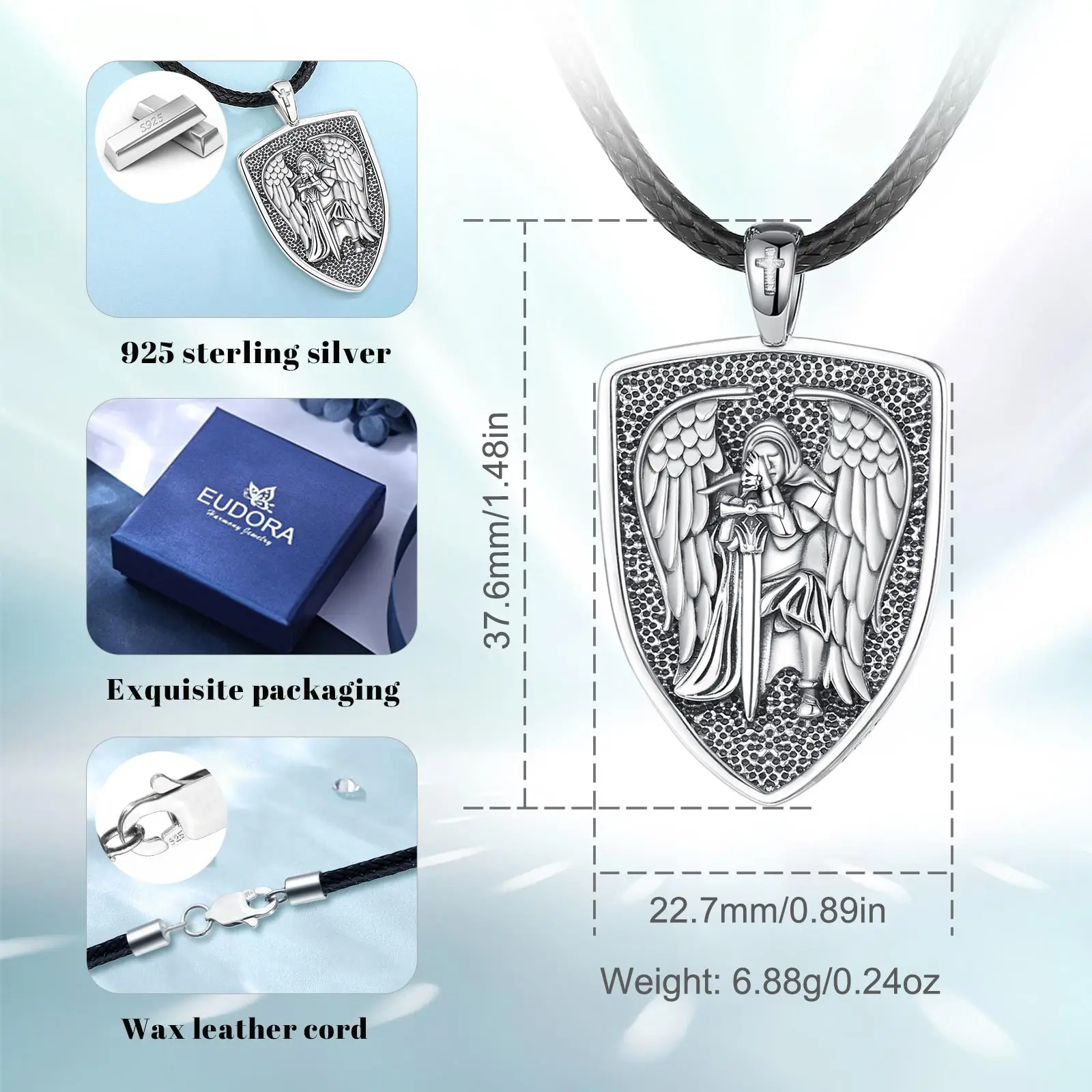 Eudora 925 Sterling Silver St.Michael Archangel Necklace Fine Angel Wings Medallion Pendant Religious Jewelry Gift for Men Women