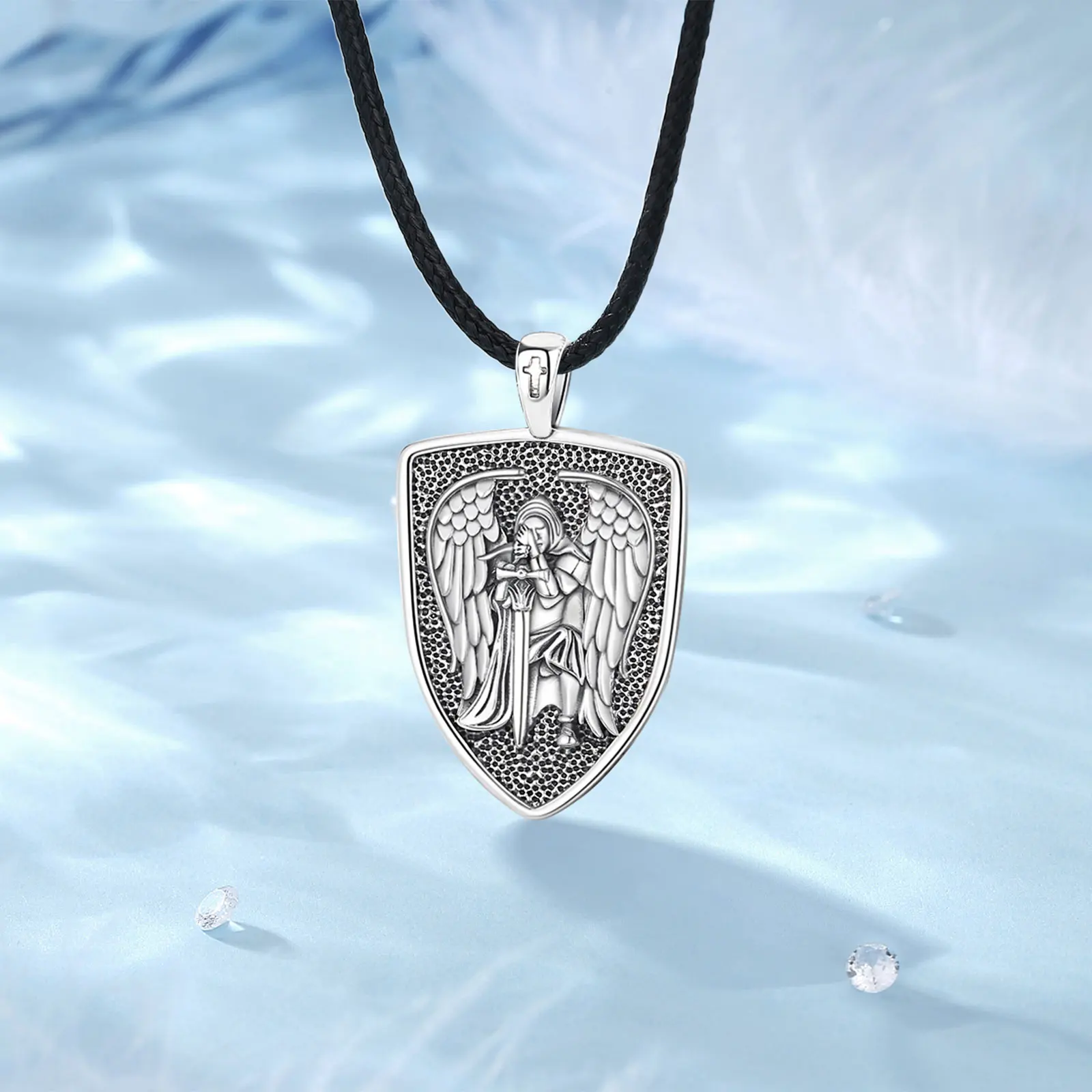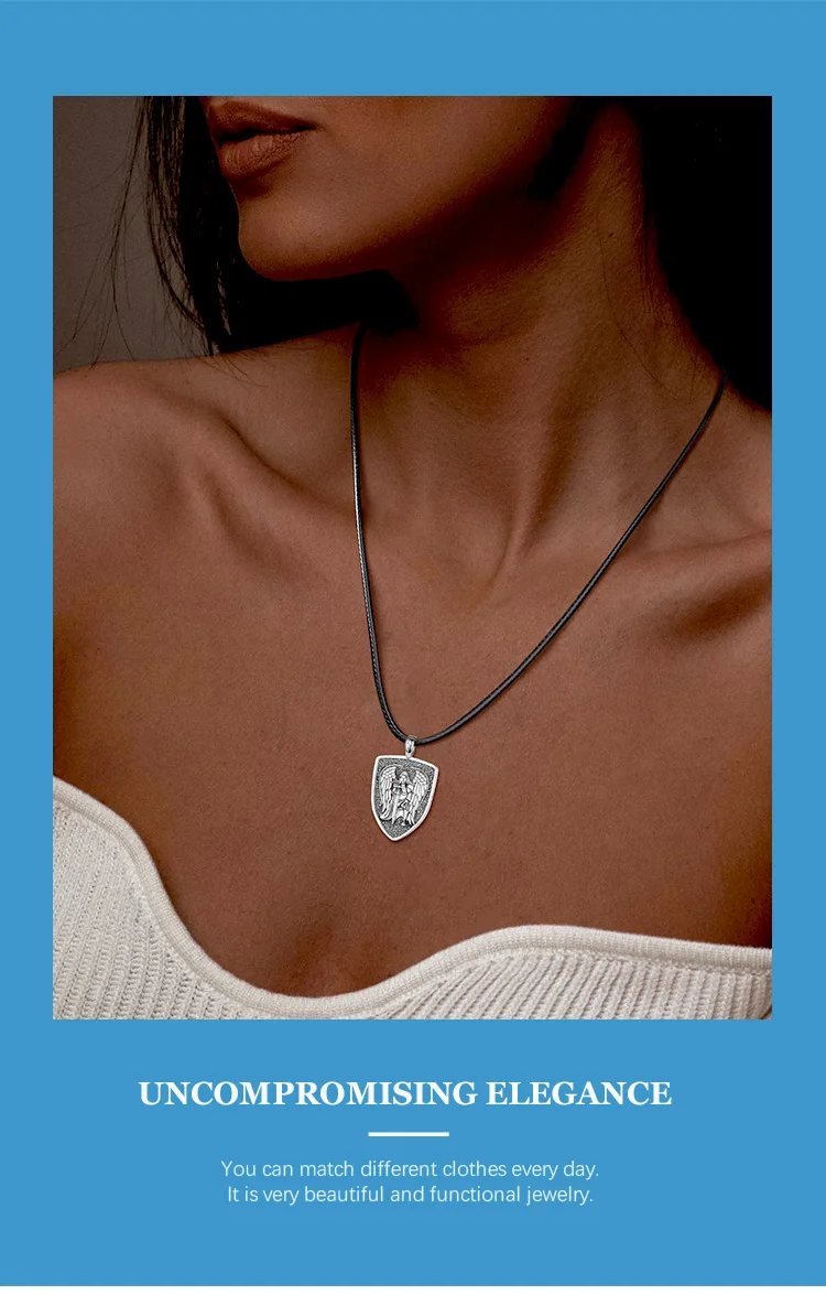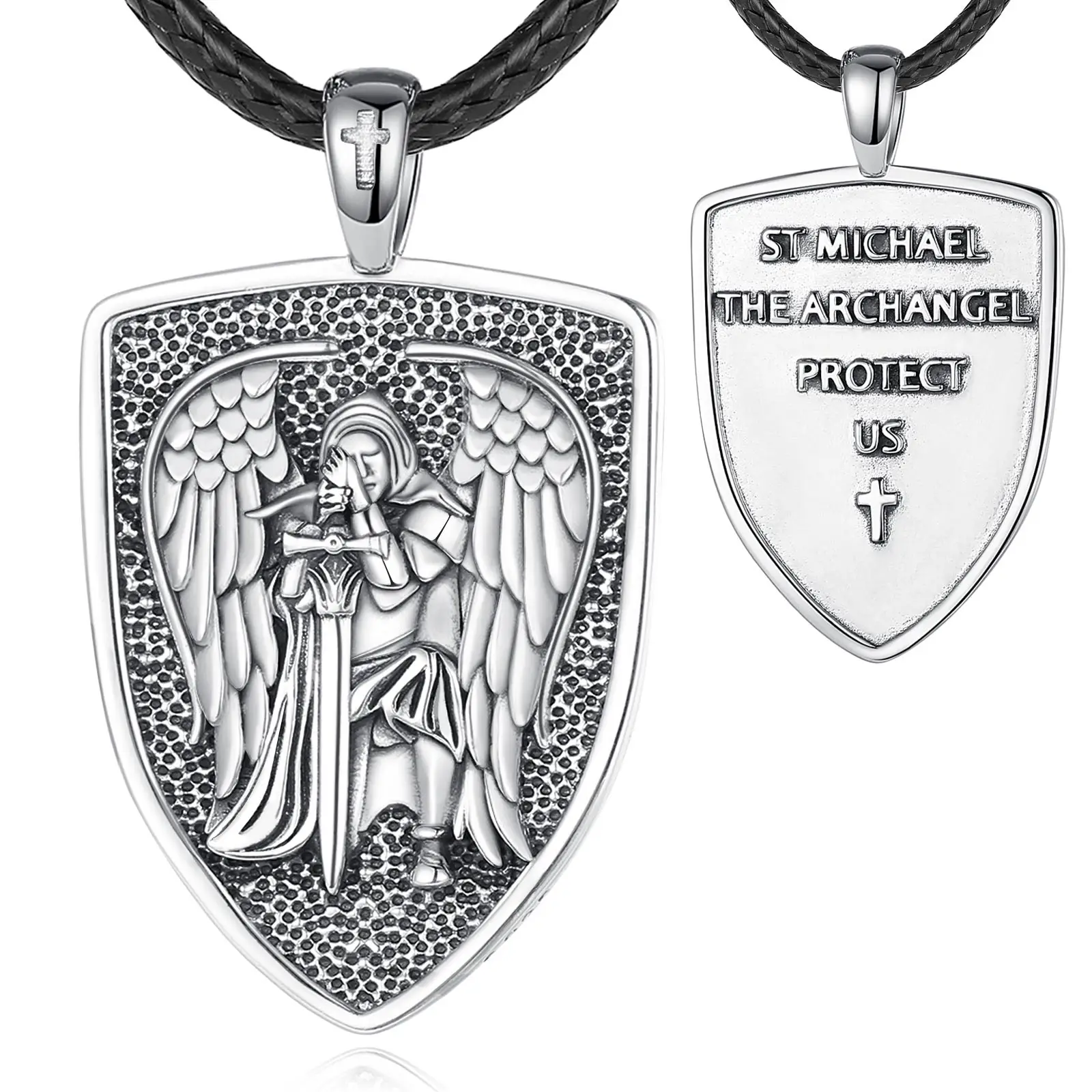 Eudora 925 Sterling Silver St.Michael Archangel Necklace Fine Angel Wings Medallion Pendant Religious Jewelry Gift for Men Women