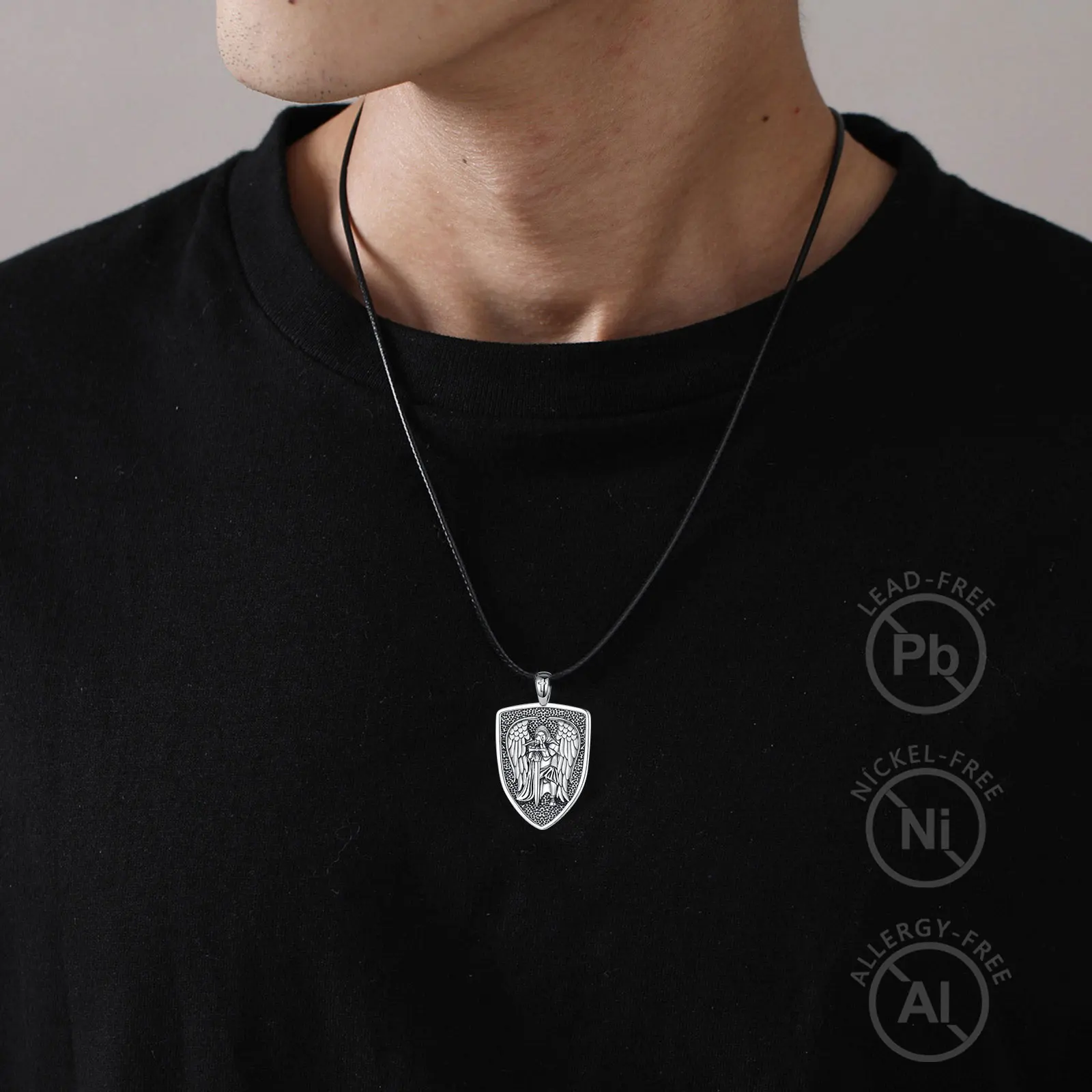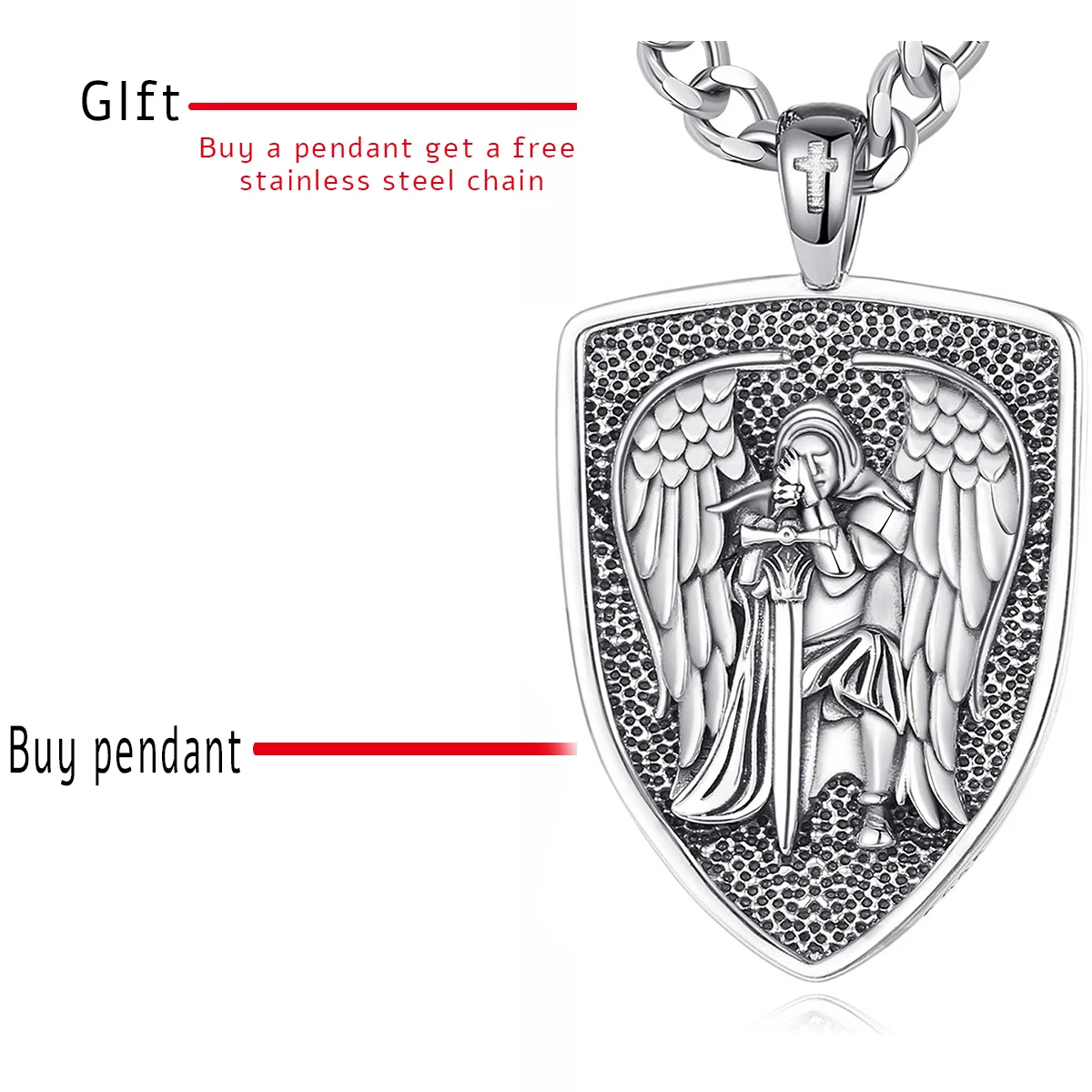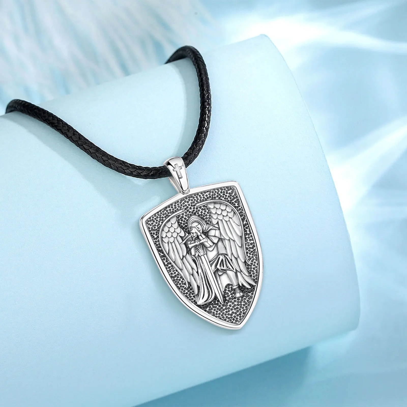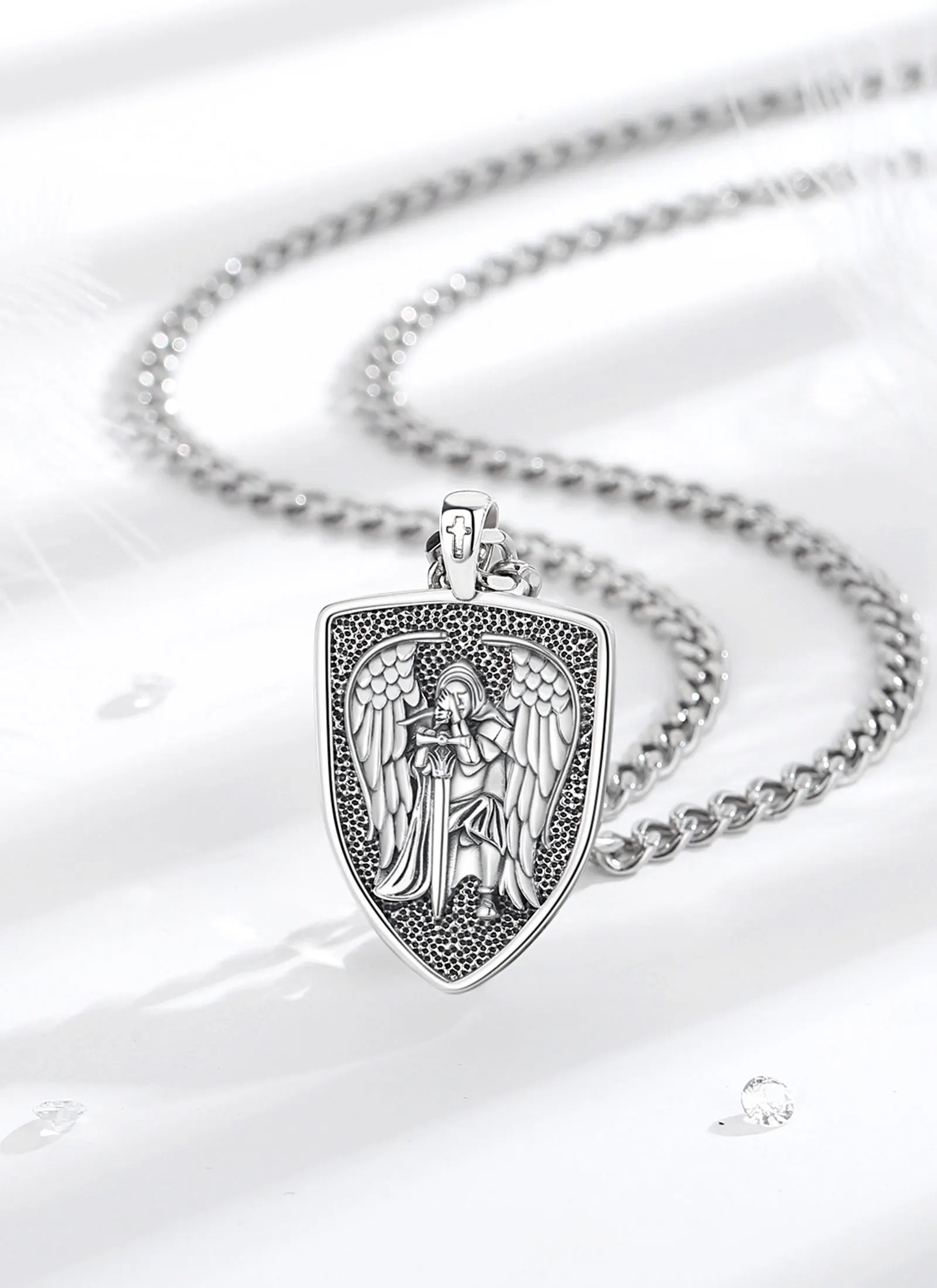 Eudora 925 Sterling Silver St.Michael Archangel Necklace Fine Angel Wings Medallion Pendant Religious Jewelry Gift for Men Women