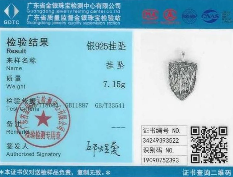 Pendant Size :37.6*22.7mmmmmm;Weight:6.88g;