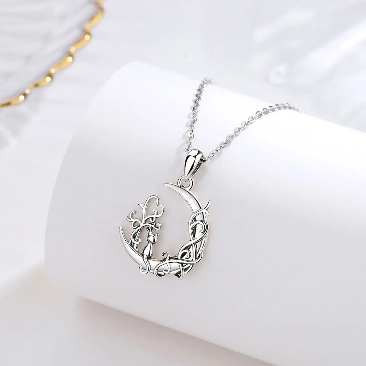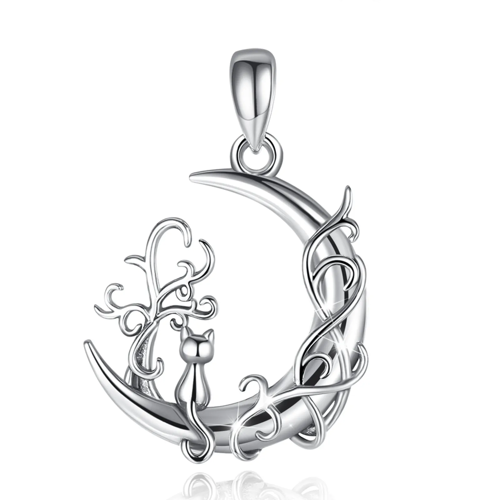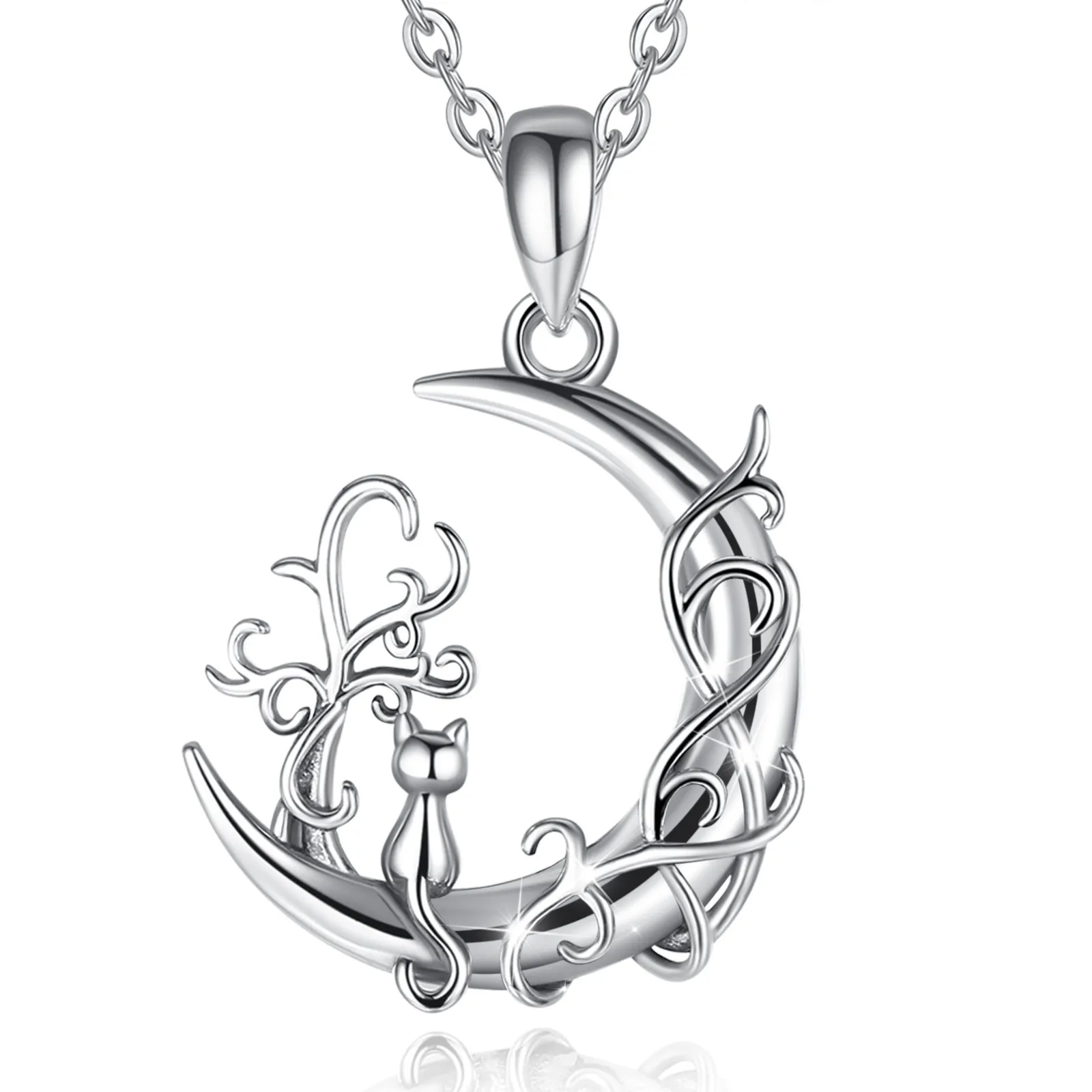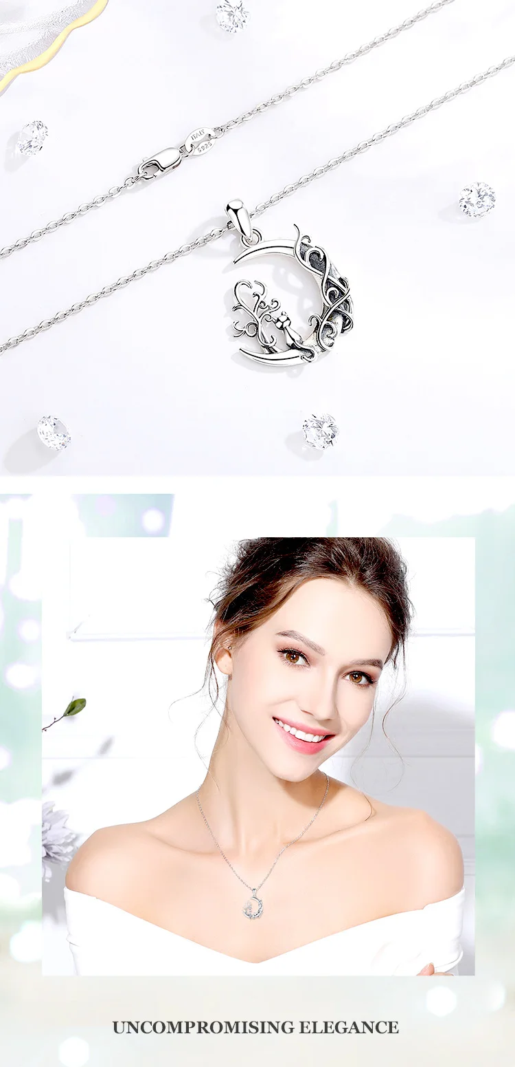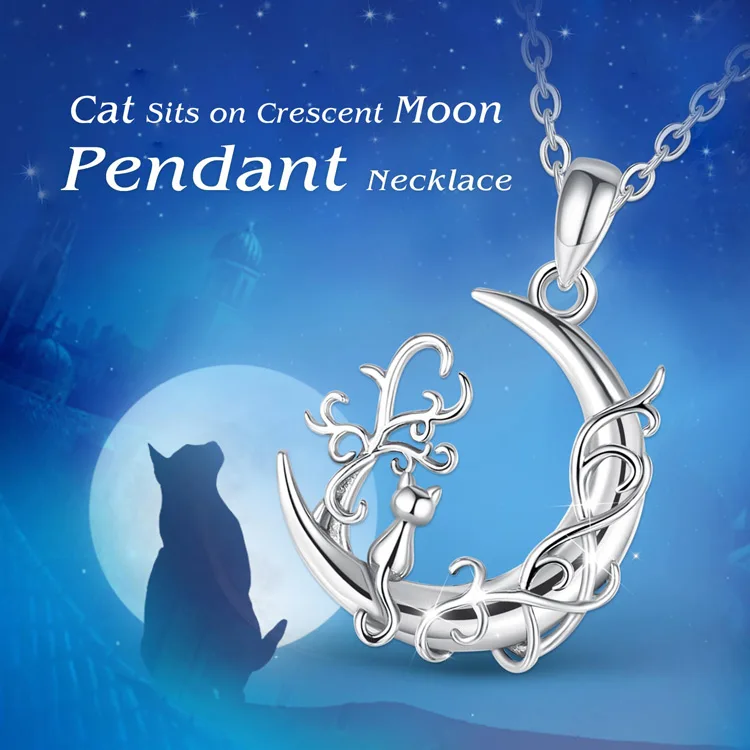 Eudora 925 Sterling Silver tree of Life Moon Pendant for women Man Cute Cat Sit on Moon Necklace Fine Silver Jewelry Party Gift