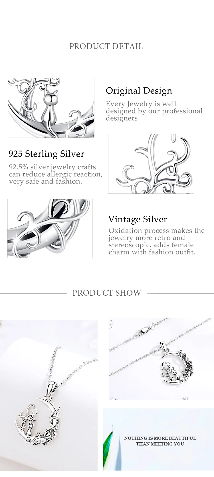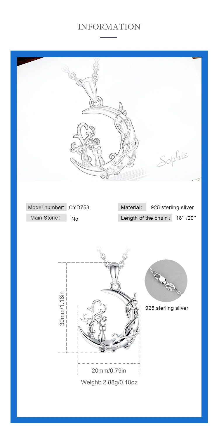 Soyez le premier à laisser votre avis sur “Eudora 925 Sterling Silver Tree of Life Moon Pendant for women Man Cute Cat Sit on Moon Necklace Fine Silver Jewelry Party Gift”