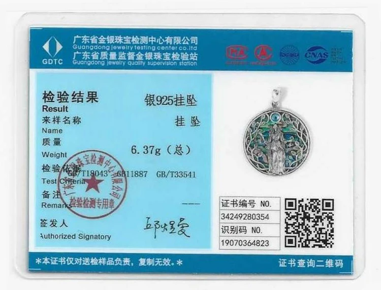 Pendant Size :36.9mm*27.7mm;Weight:6.67g;