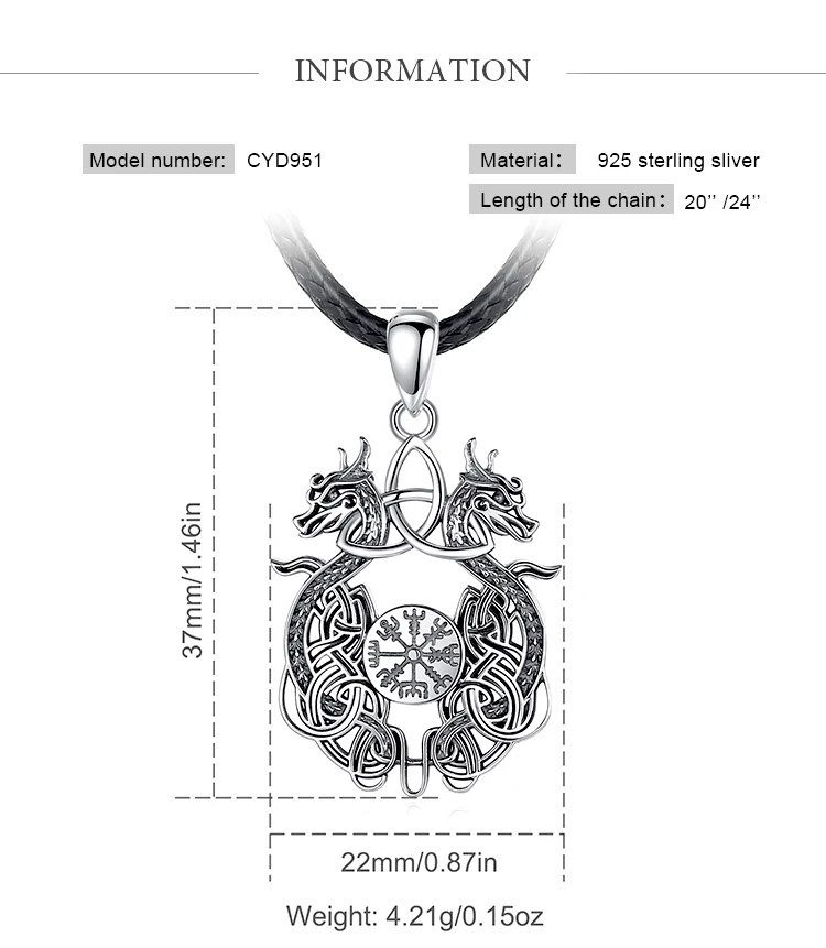 Soyez le premier à laisser votre avis sur “Eudora 925 Sterling Silver Viking Dragon Necklace for Man Women Celtic Knot Compass Amulet Pendant Personality Jewelry Fine Gift”