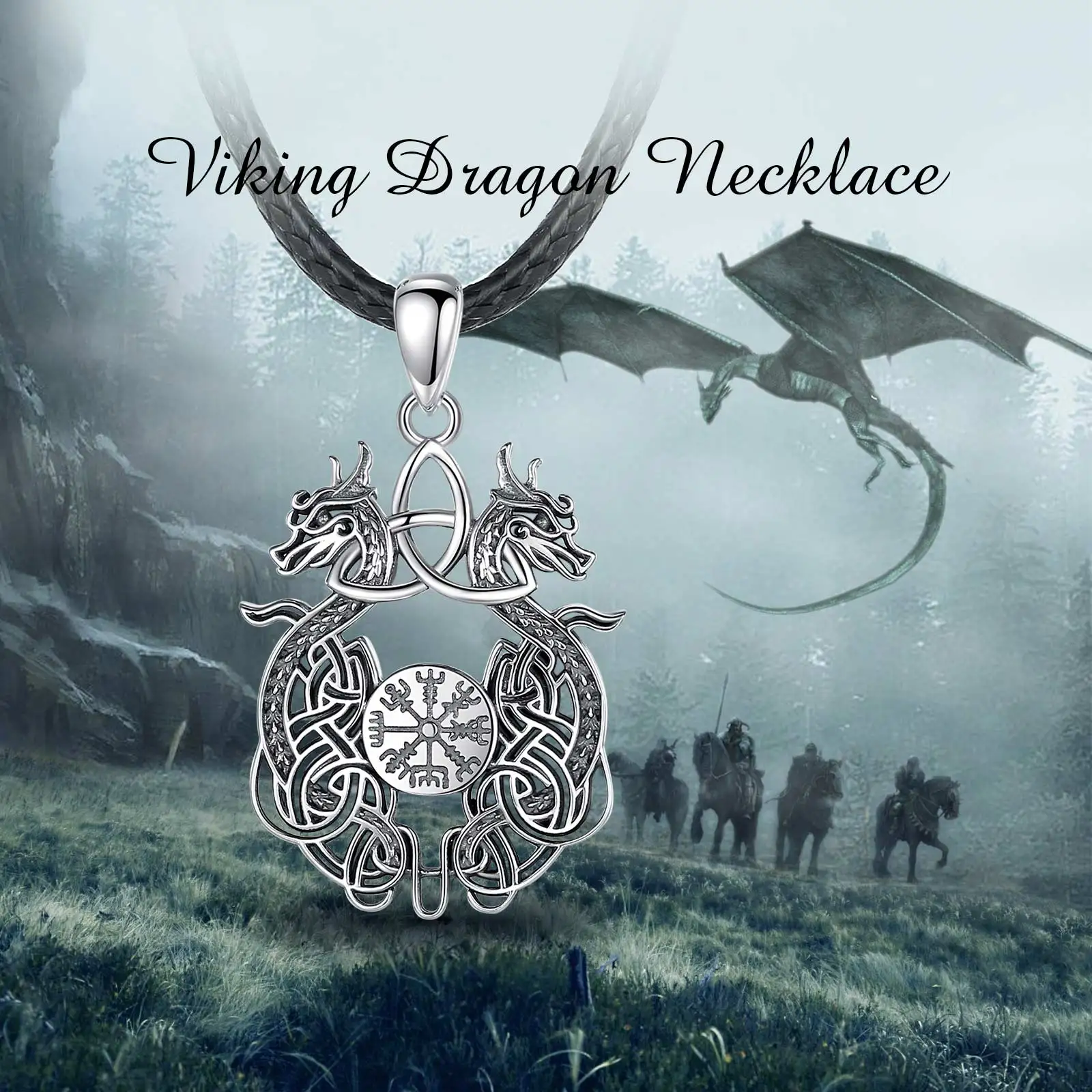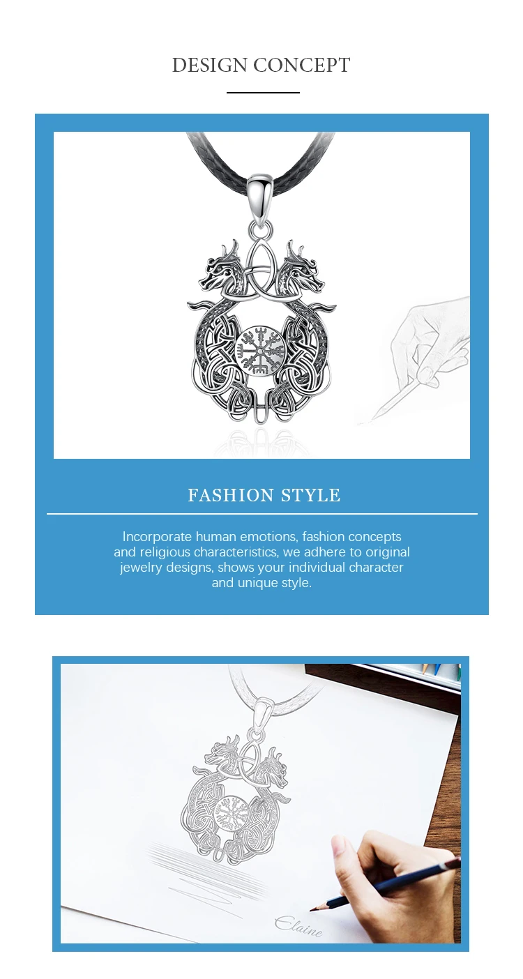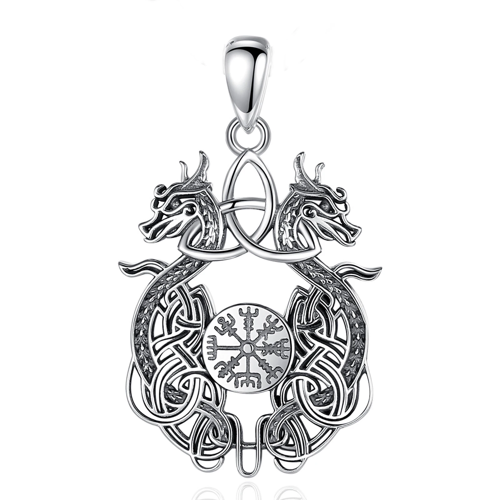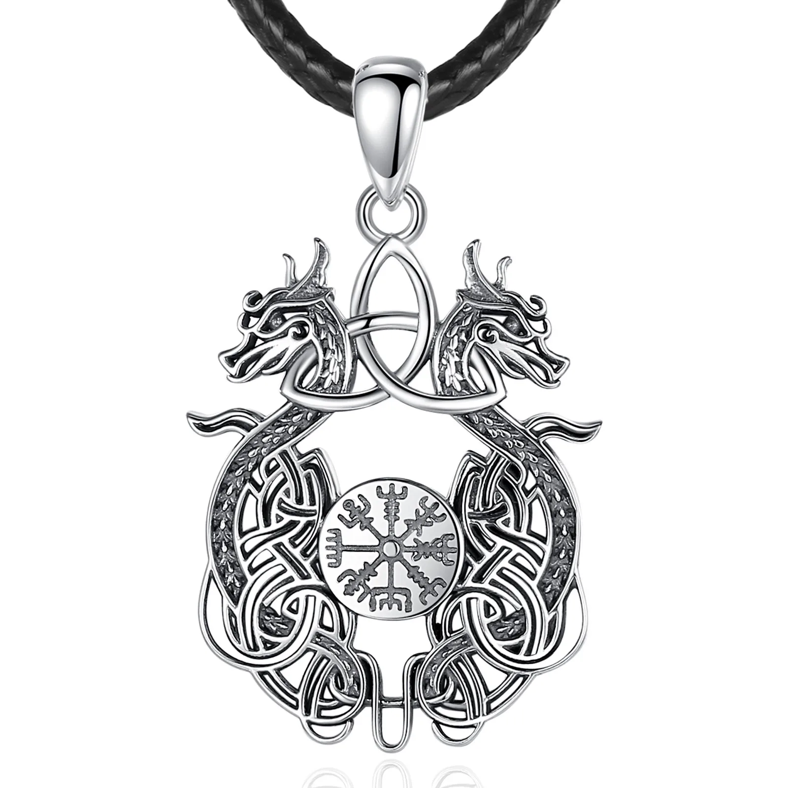 Eudora 925 Sterling Silver Viking Dragon Necklace for Man Women Celtic Knot Compass Amulet Pendant Personality Jewelry Fine Gift