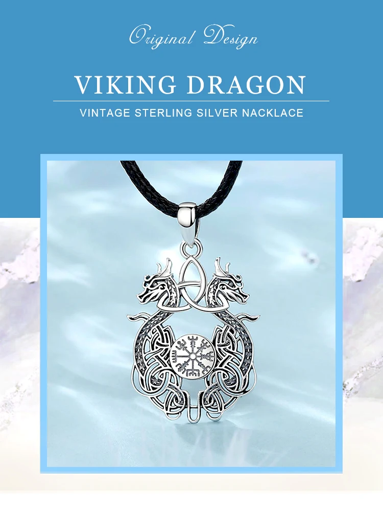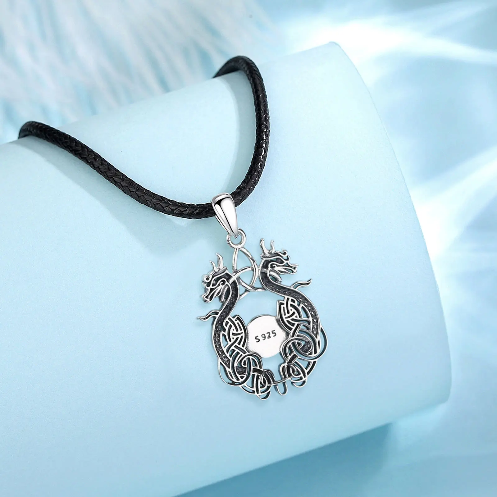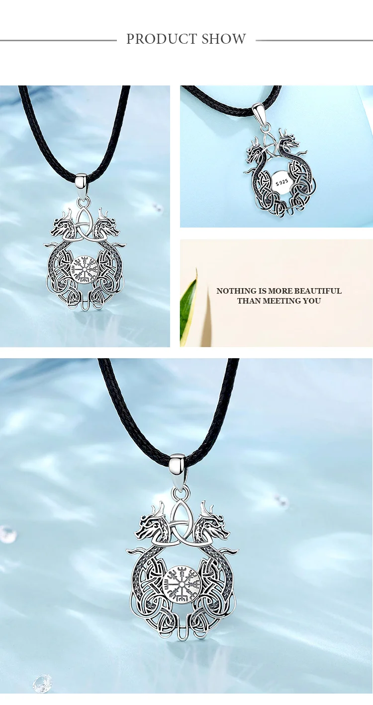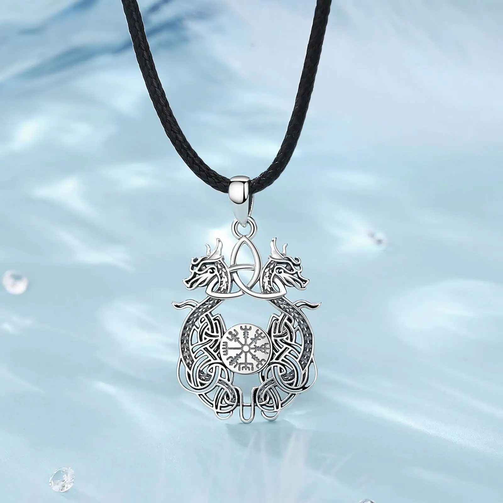 Eudora 925 Sterling Silver Viking Dragon Necklace for Man Women Celtic Knot Compass Amulet Pendant Personality Jewelry Fine Gift
