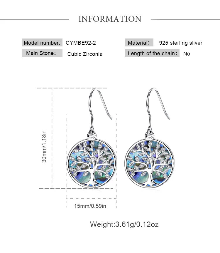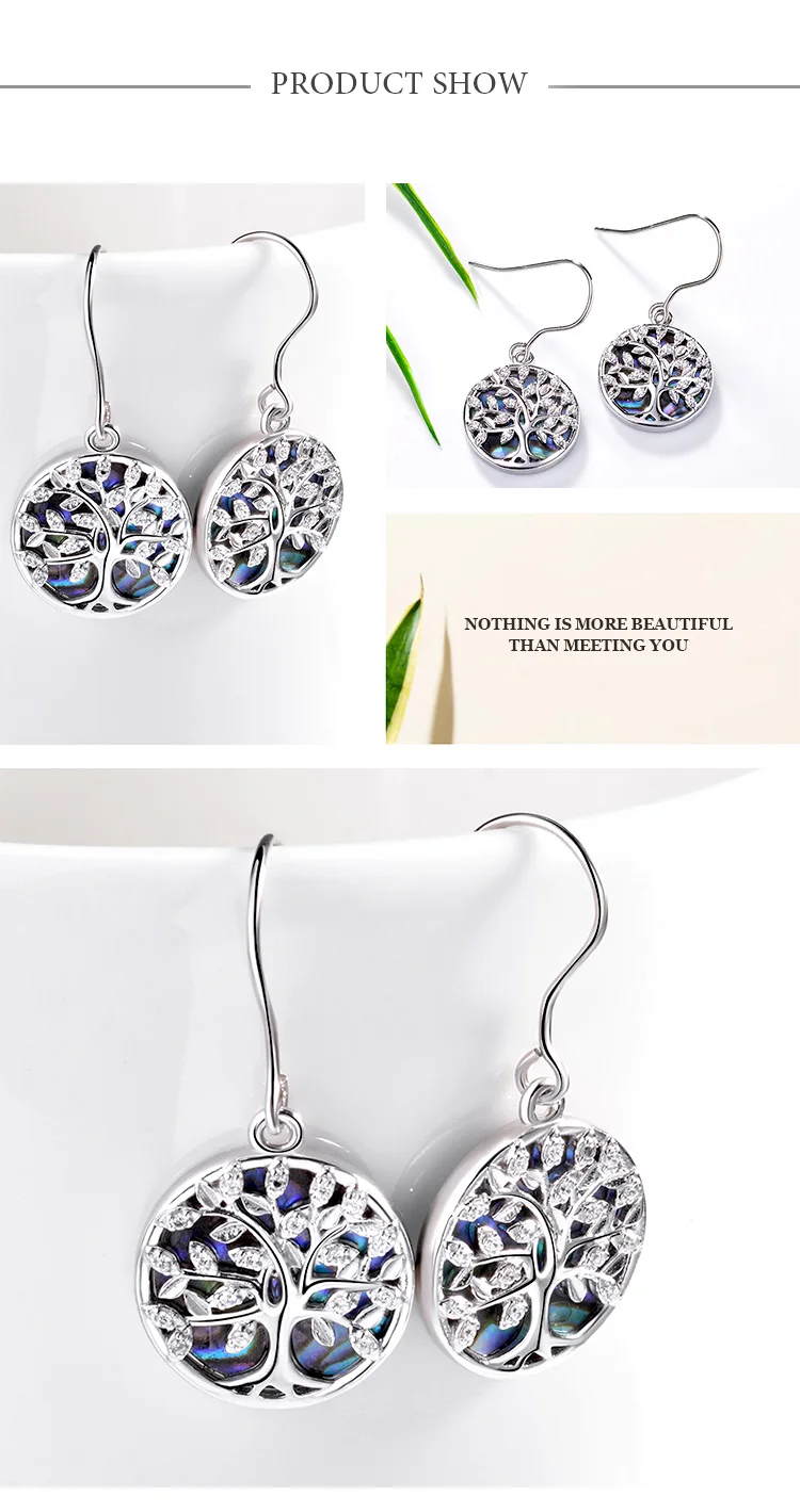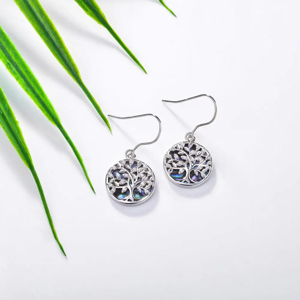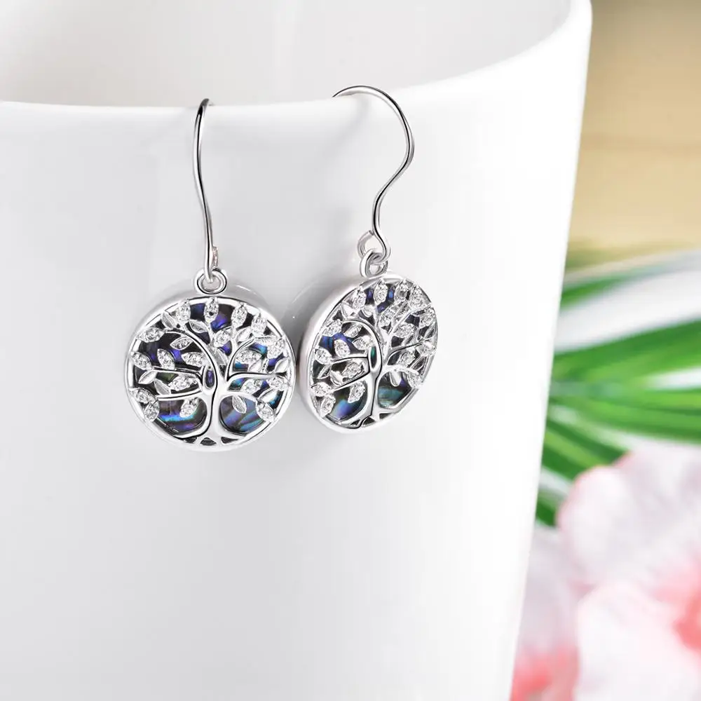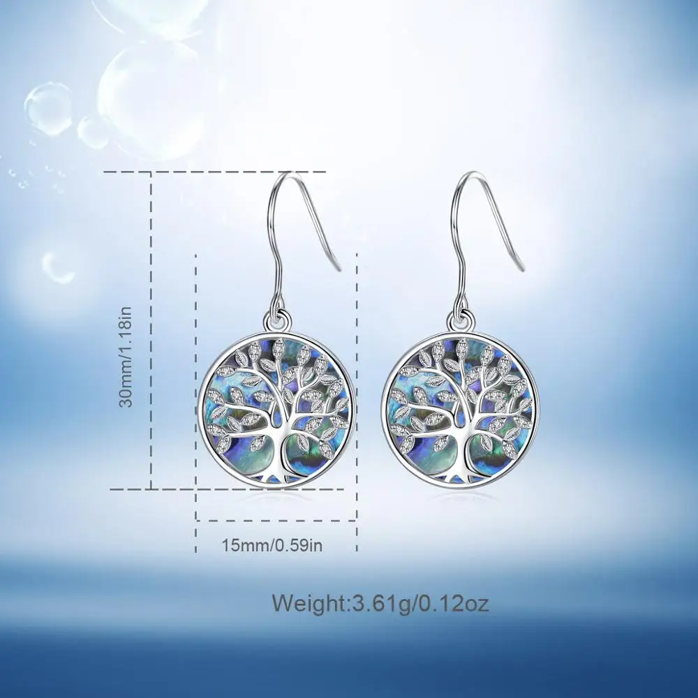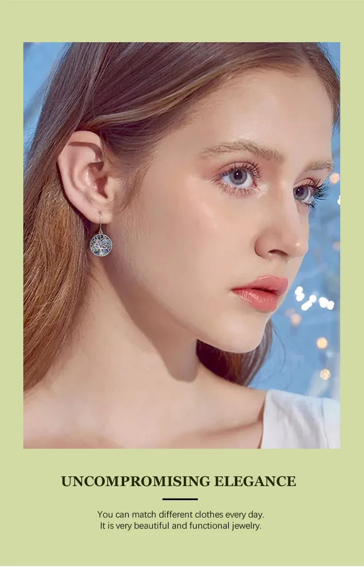 EUDORA 925 Sterling Silver Tree of Life Earrings Circle of Life Jewelry with Stars Pentagram Drop Earring Gift for Girlfriend Mom Sister