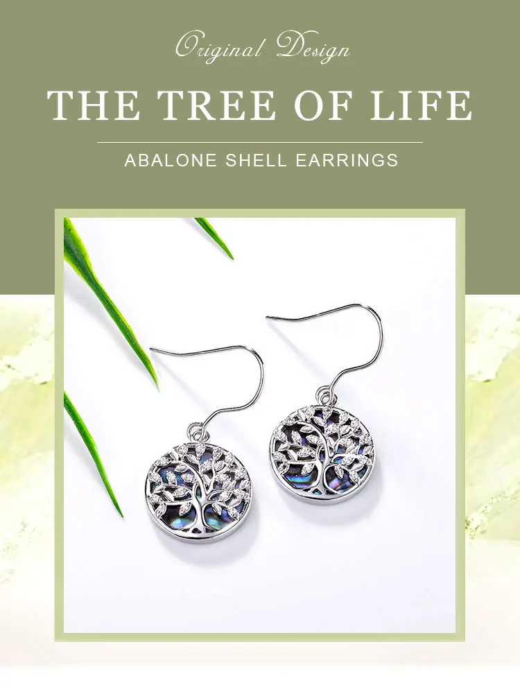 EUDORA Real 925 Sterling Silver Tree of Life Earrings Circle Mother of Pearl Crystal Blue Drop Earrings Gift for Girlfriend E92