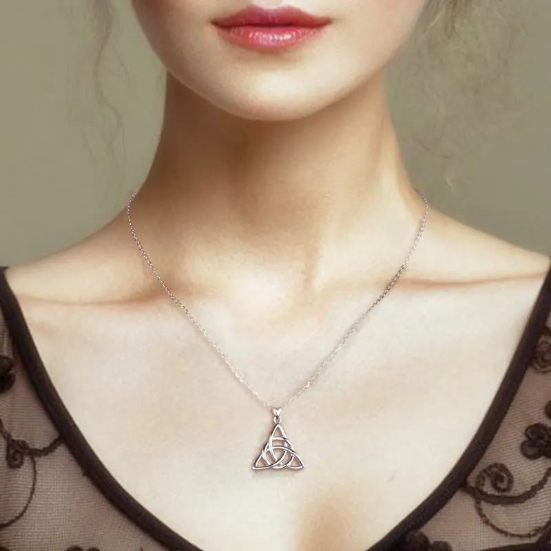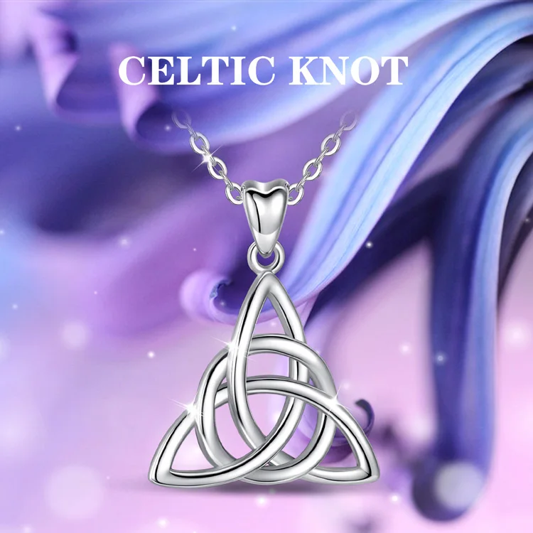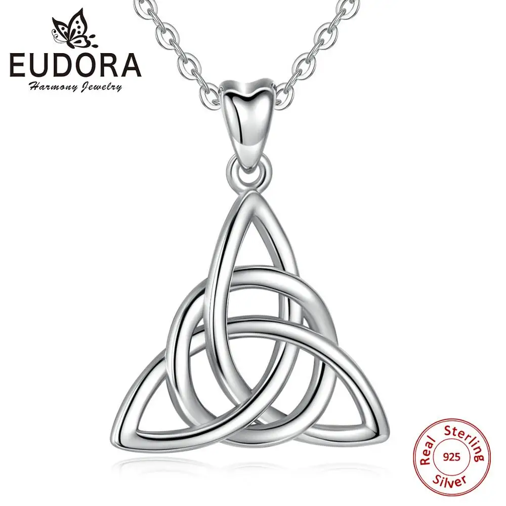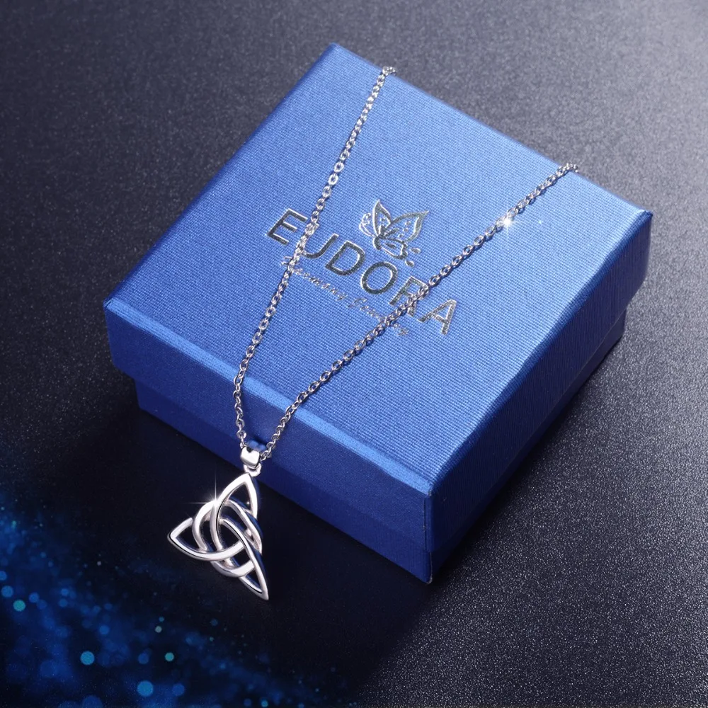 Eudora Real 925 Sterling Silver Triangle Celtics Knot Pendant Neckalce Women Fashion Sliver Jewelry for Birthday Gift Box CYD138