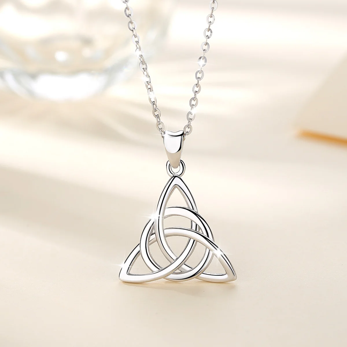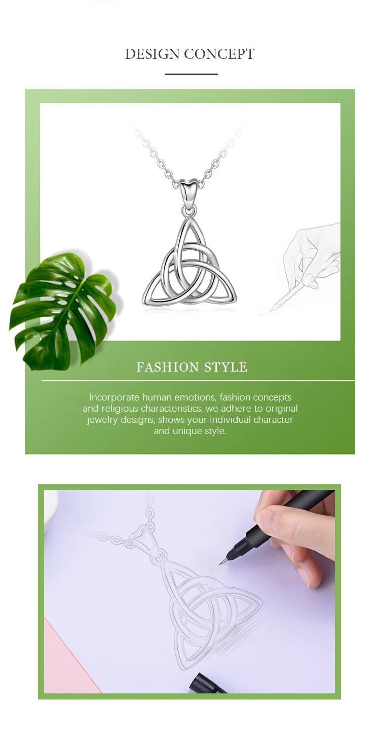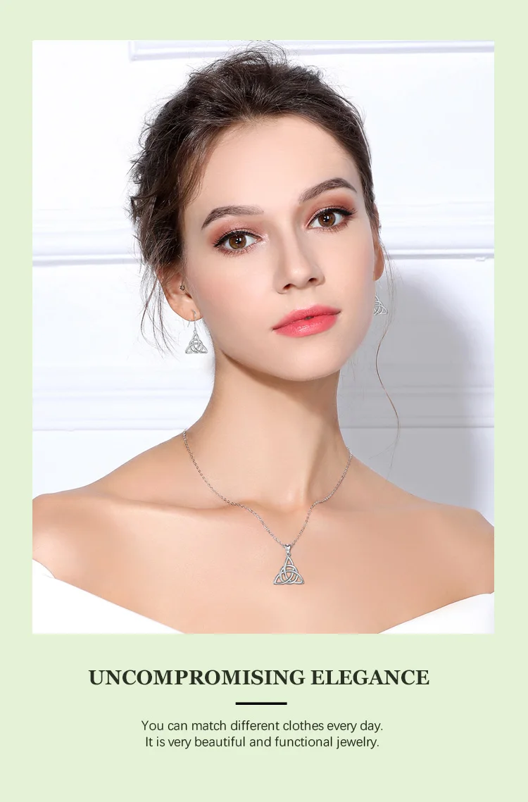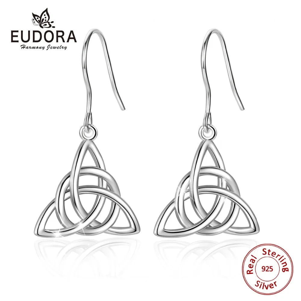 Eudora Real 925 Sterling Silver Triangle Celtics Knot Pendant Neckalce Women Fashion Sliver Jewelry for Birthday Gift Box CYD138