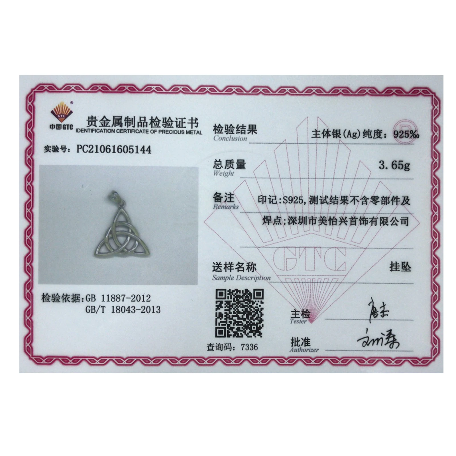 Pendant Size : 27mm*22mm;Weight: 3.51 g;