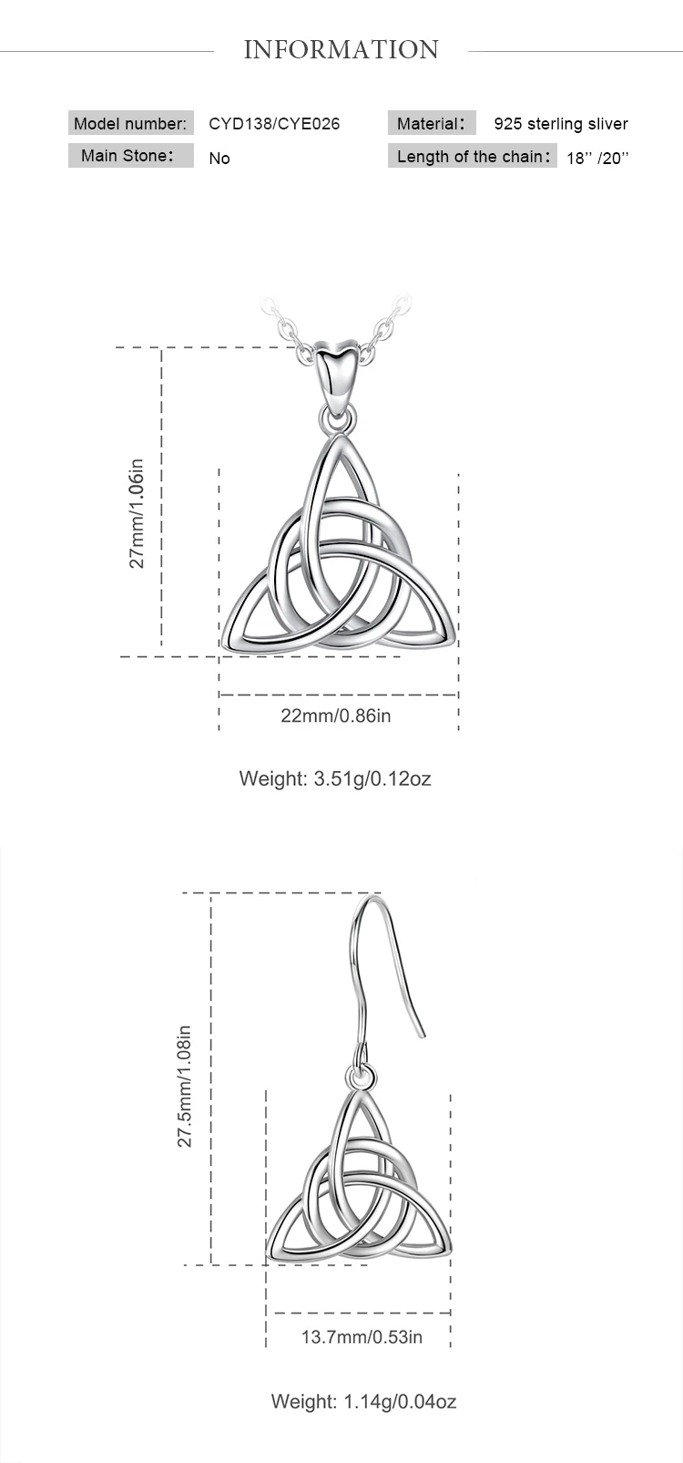 Soyez le premier à laisser votre avis sur “Eudora Real 925 Sterling Silver Triangle Celtics Knot Pendant Neckalce Women Fashion Sliver Jewelry for Birthday Gift Box CYD138”