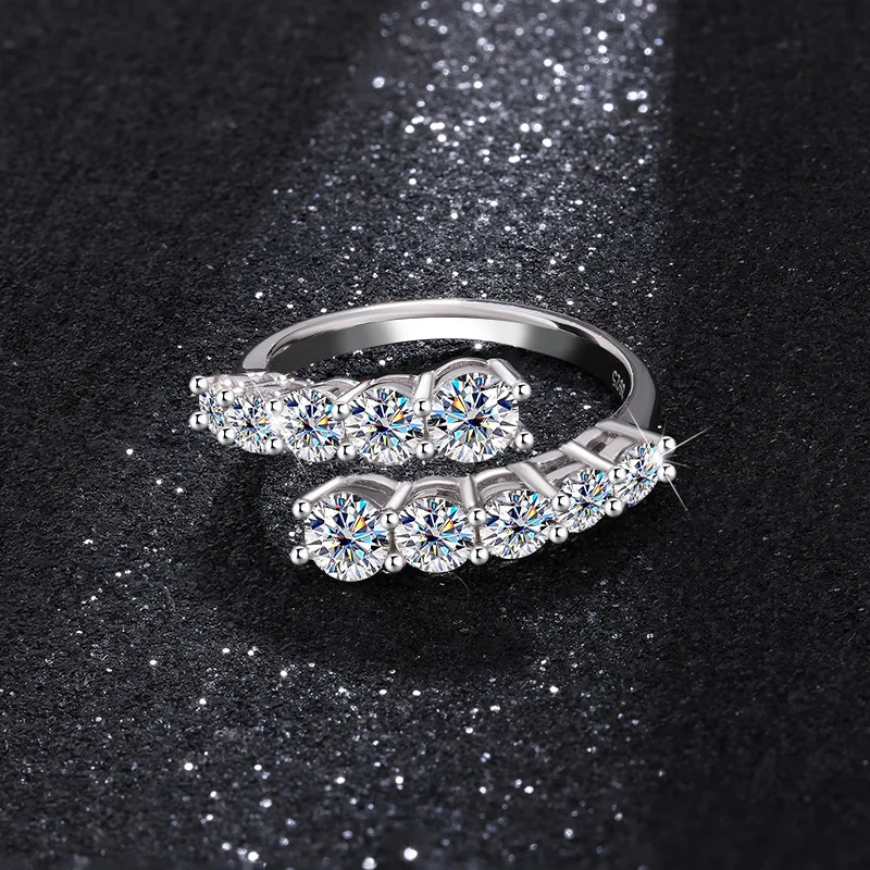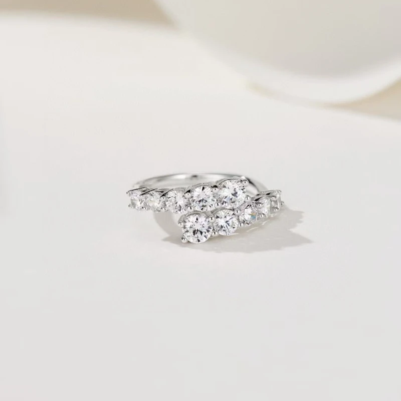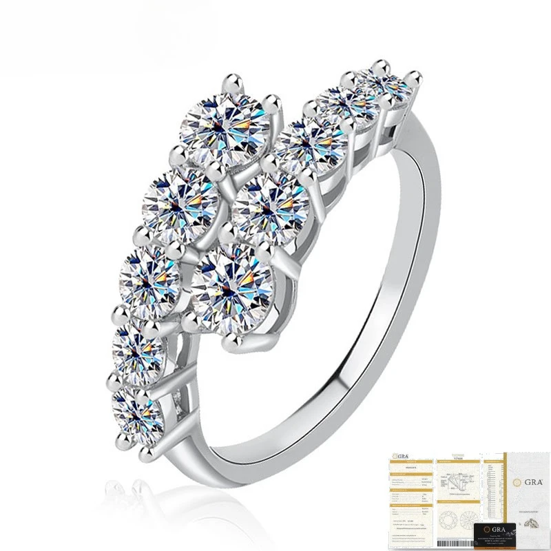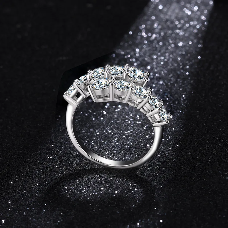 Trumium 1.7CT 10 Gems Full Moissanite Rings for Women S925 Sterling Silver Sparkling Flawless Lab Created Diamond Wedding Band