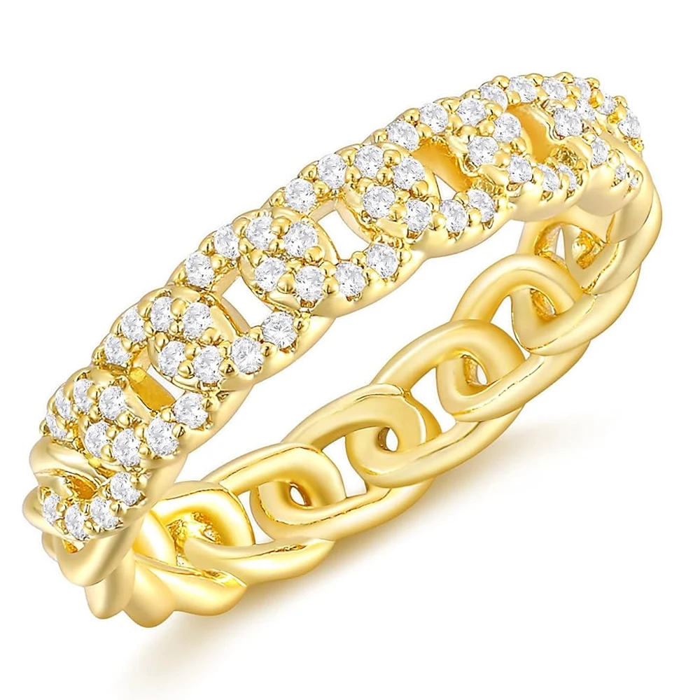Trumium 14K Gold Plated Chain Link Rings for Women Round Cubic Zirconia Half Eternity Stackable Engagement Promise Rings