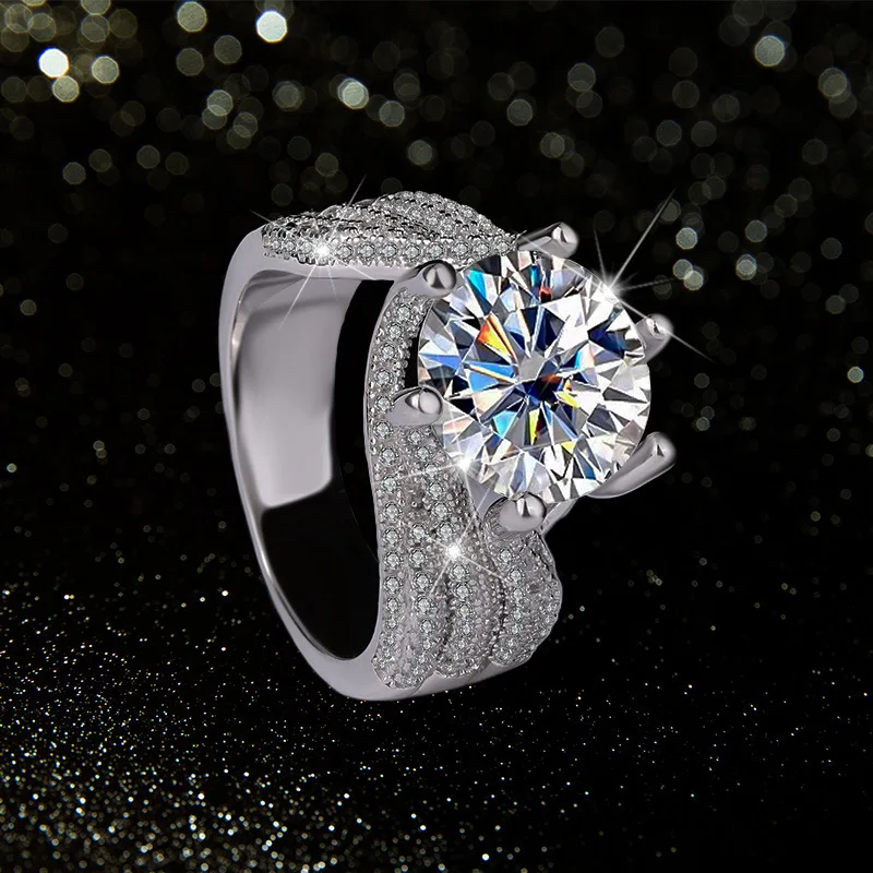 Trumium Luxury 3ct 5ct Sparkling Big Moissanite Diamond Rings for Women Three Rows Zircon 925 Silver Wedding Band Fine Jewelry