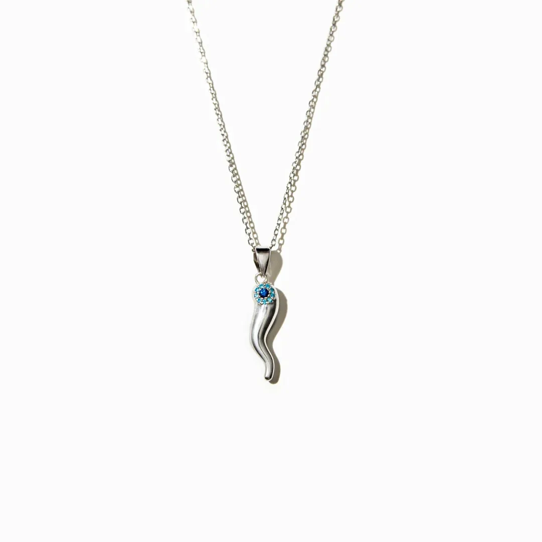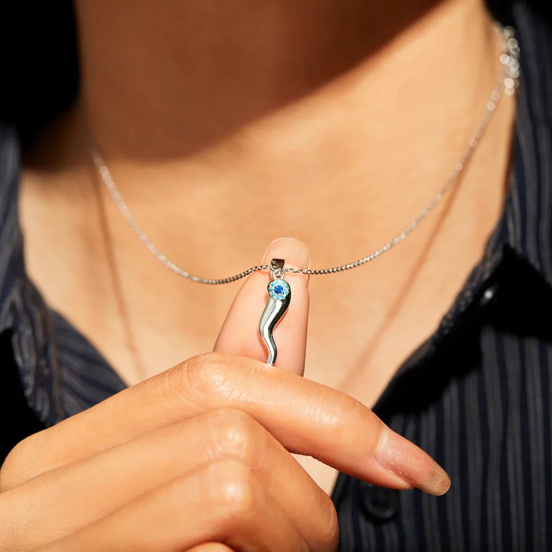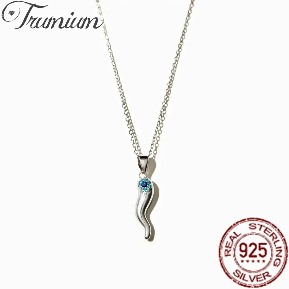 Trumium s925 Sterling Silver Blue Eye Necklaces for Women Men Italian Horn Pendant Chic Chains Necklace Fine Jewelry